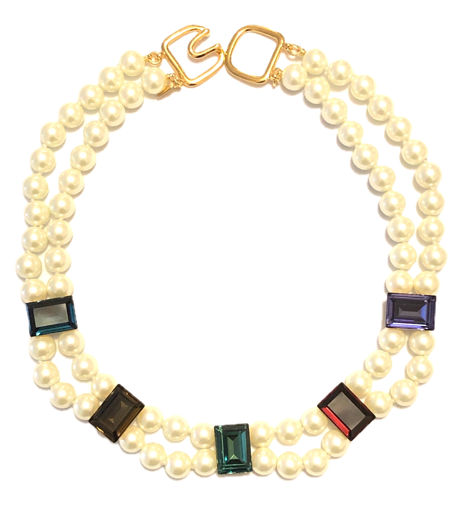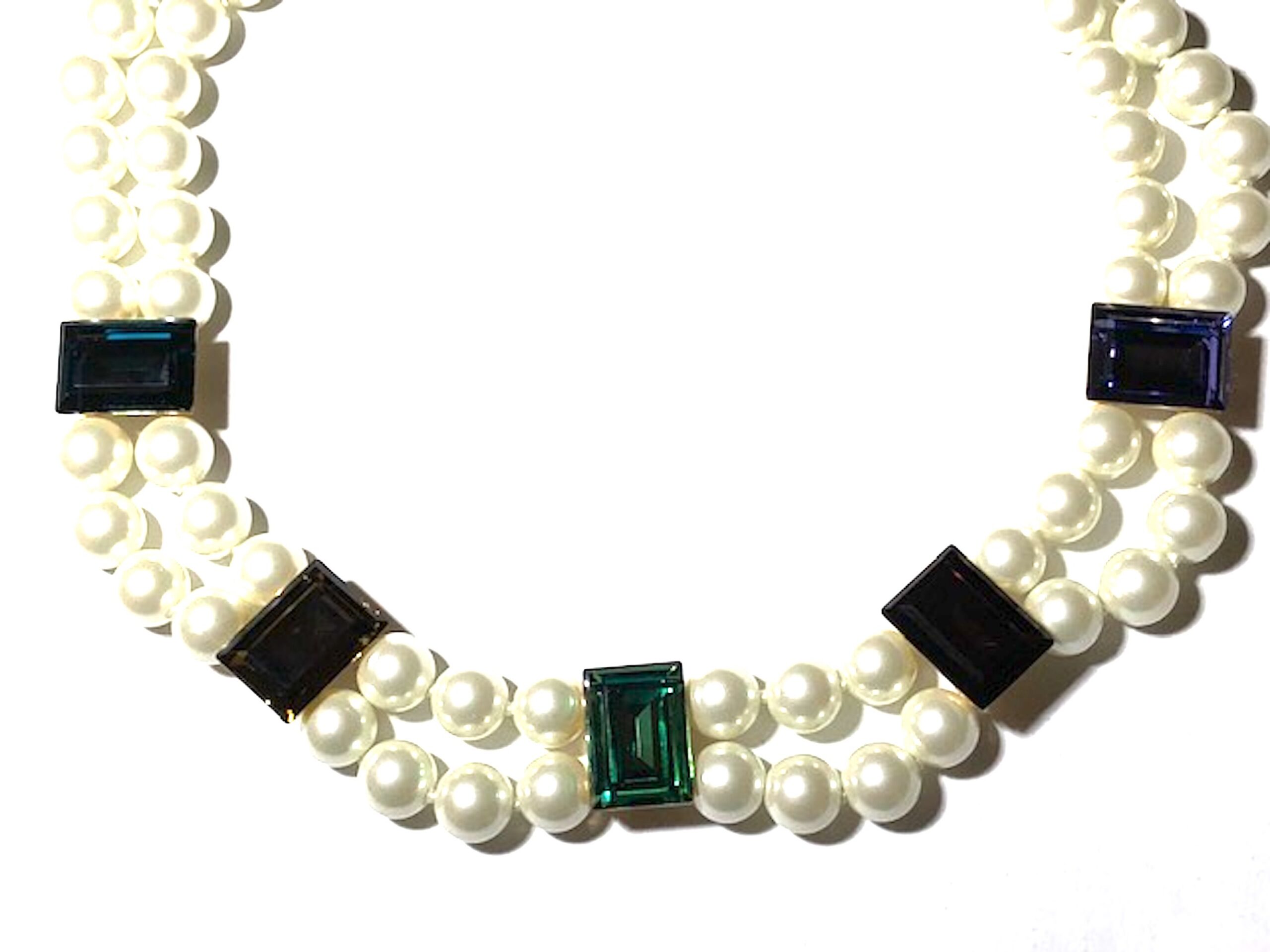 KENNETH JAY LANE – 2 ROW PEARL NECKLACE WITH JEWEL TONE CRYSTAL ACCENTS. THIS NECKLACE CAN BE MADE IN OTHER LENGTHS, 16, 17 , 19. JUST EMAIL ME. LOVE THIS NECKLACE. GREAT TO WEAR WITH ANY COLOR OUTFIT. I WEAR THIS ONE ALL THE TIME.